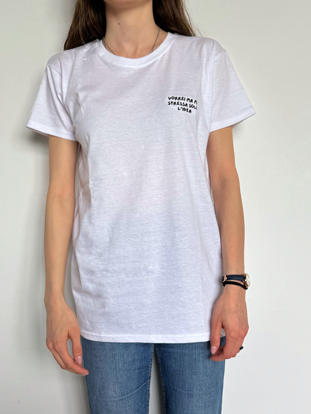 Le T-Shirt sono in 100% cotone organico (così non sudi e resti fresca!). Nessuna stampa, solo ago, filo e tanta ironia cucita a mano. Ogni frase è lì per restare (e non sbiadire al primo lavaggio).